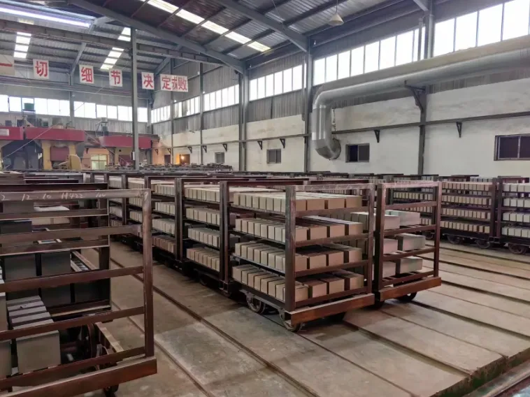 To ease foreign buyers’ (e.g., preheater, tertiary air duct, lime kiln users) worries about opaque processes and unstable quality, Highland Refractory follows a strict workflow for Silicon Brick. We first inspect high-purity silica raw materials, testing SiO₂ content (≥93%, critical for acid resistance) and impurity levels—stricter than standards for alumina silica brick—to lay a solid foundation for silica refractory brick. Next, we use 800-ton precision hydraulic presses to mold the mixture, ensuring uniform density; then sinter it at 1350-1450℃ to enhance heat resistance and reduce creep, a key advantage over alumina silica refractory brick.